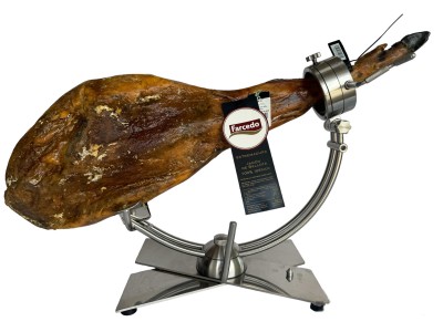 El Jamón de Bellota 100% Ibérico Farcedo es 'la joya de la corona', el 'auténtico pata negra', un producto elaborado con las extremidades traseras de cerdos ibéricos alimentados con bellota y pastos de la Dehesa Extremeña. Estos cerdos son 100% raza ibérica y su explotación es extensiva al aire libre.
